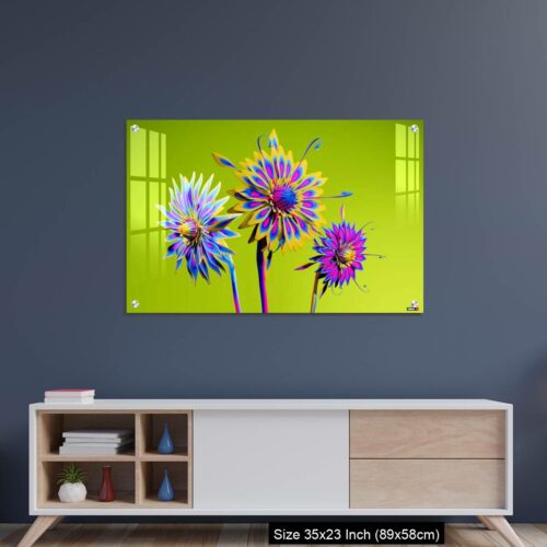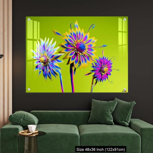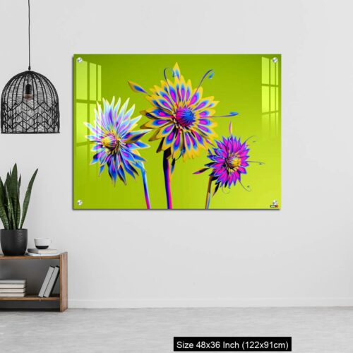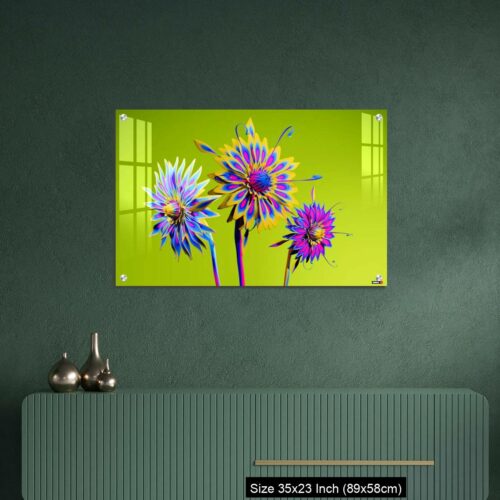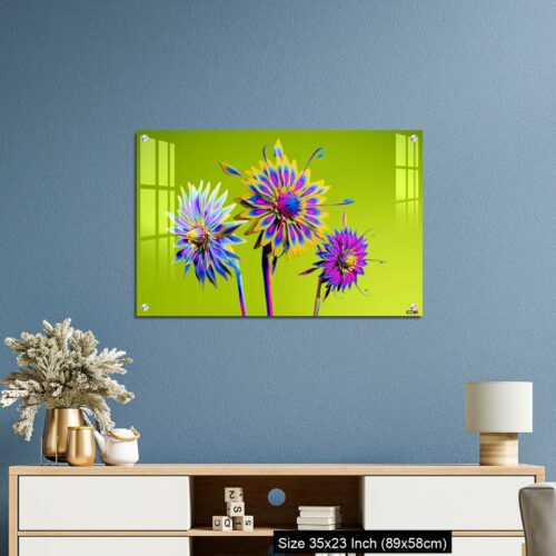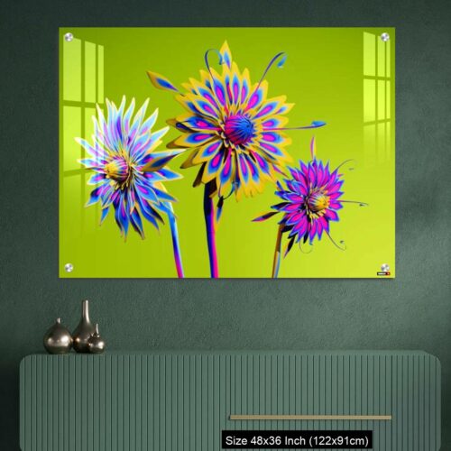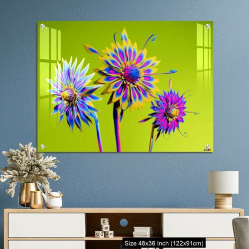 Acrylic Wall Decor – Artificial Multicolor CGI Abstract flowers_stock photo
