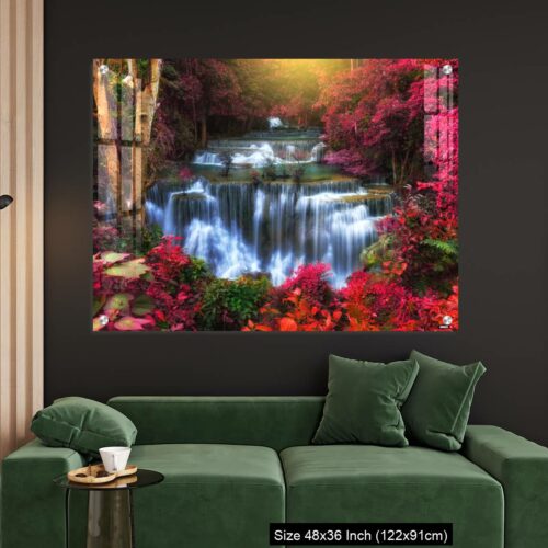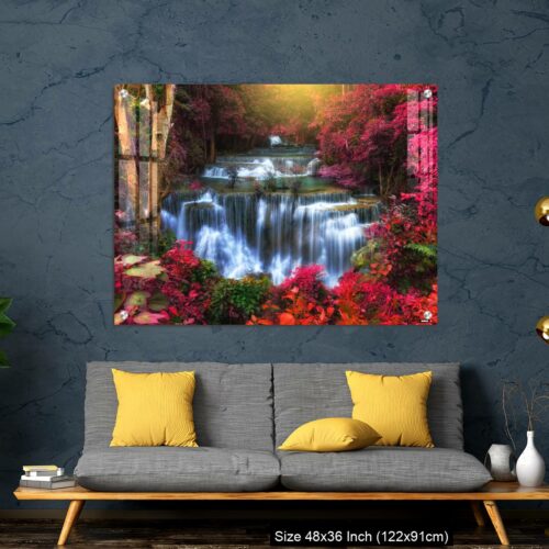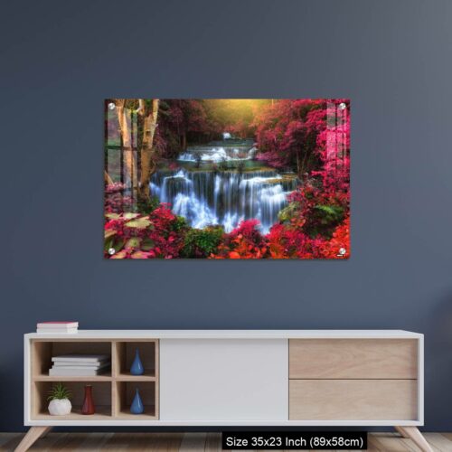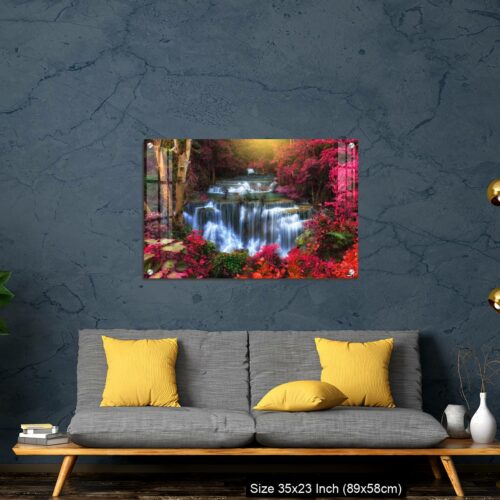 Acrylic Wall Decor – Beautiful landscape waterfall in Autumn