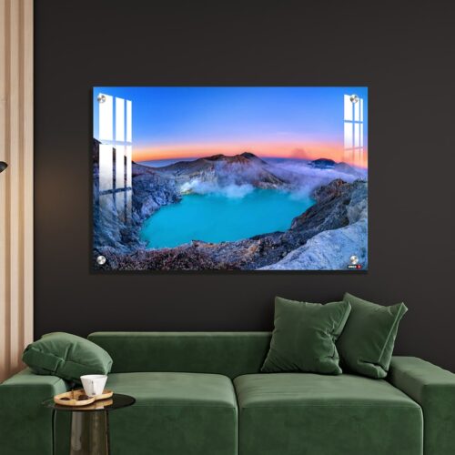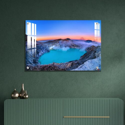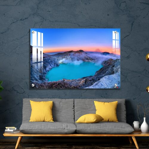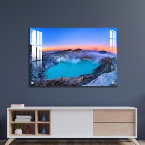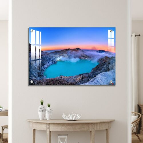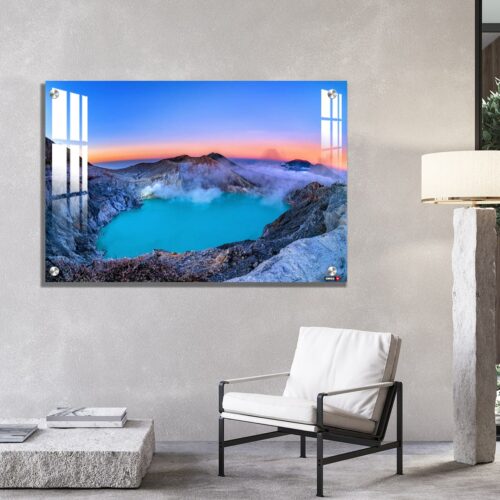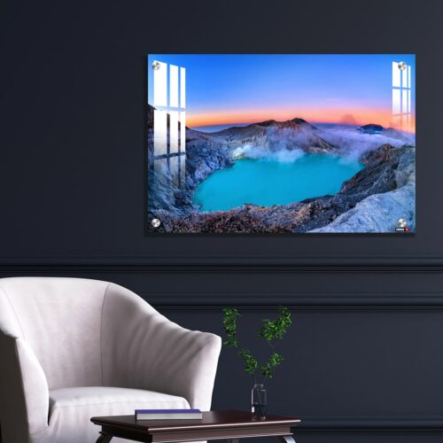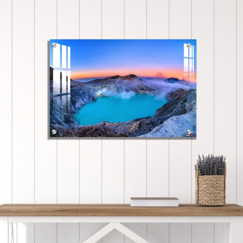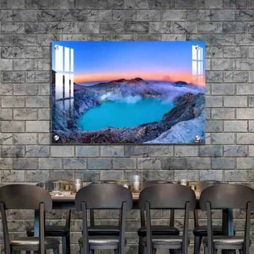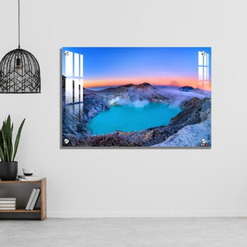 Acrylic Wall Decor – Beautiful View of Kawah Ijen Lake and Volcano Early Morning at East Java, Indonesia.