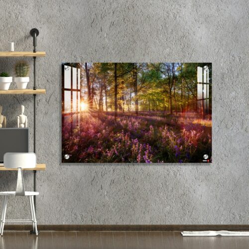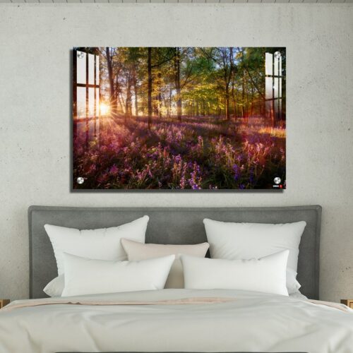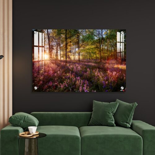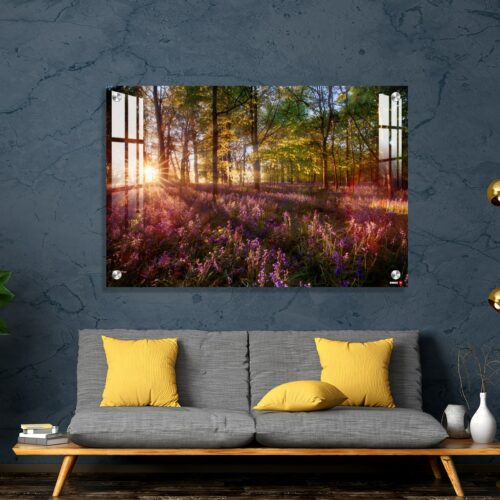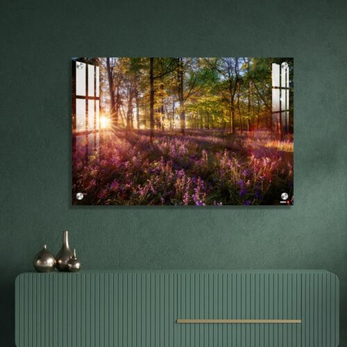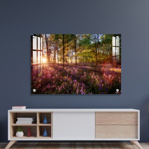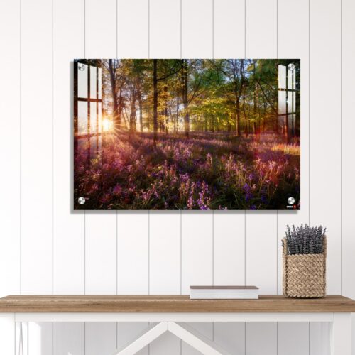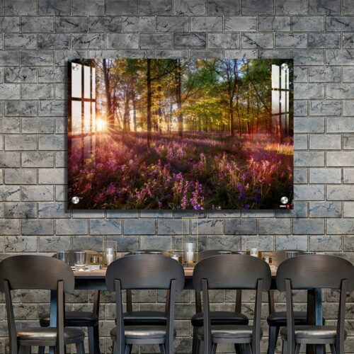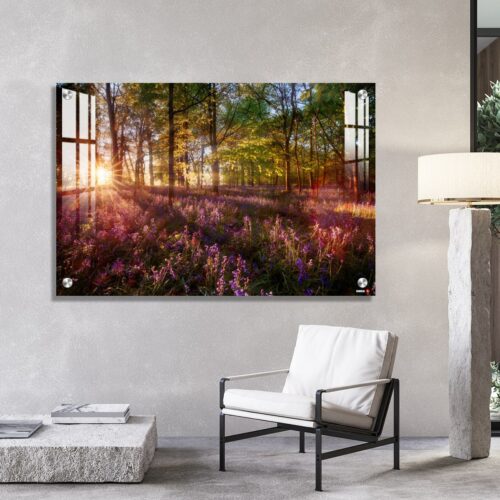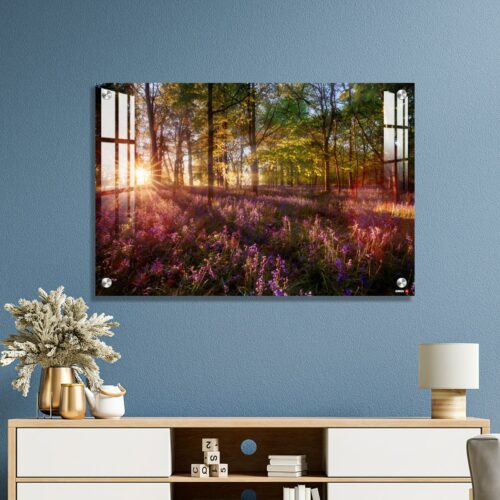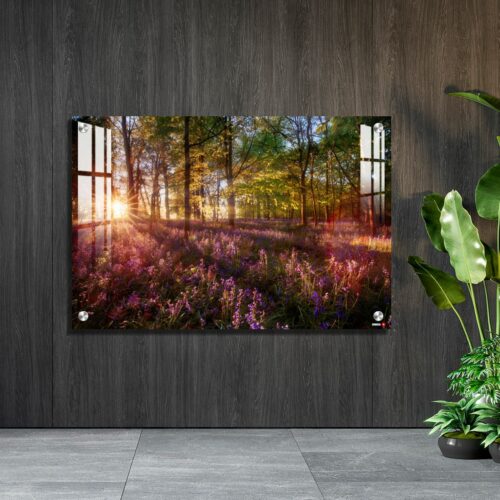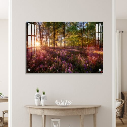 Acrylic Wall Decor – Dawn Light Shines Through Bluebell Forest