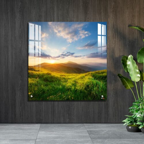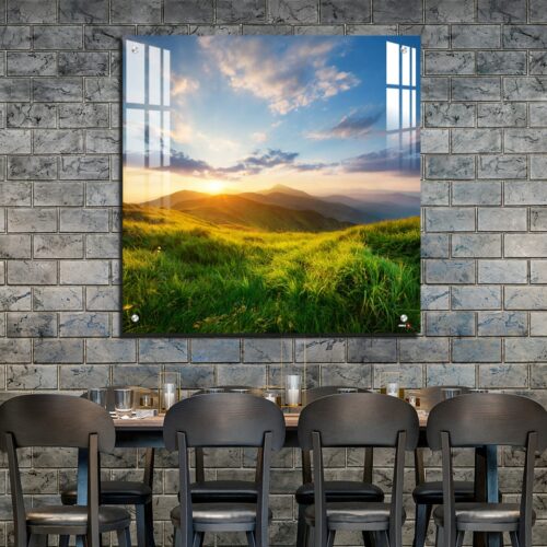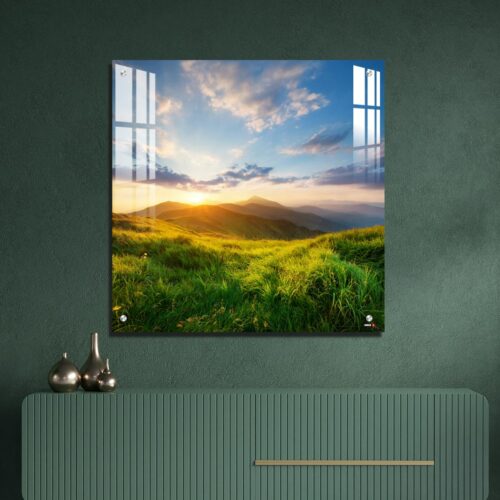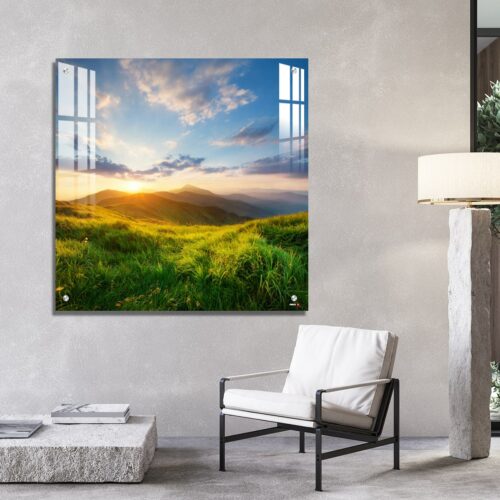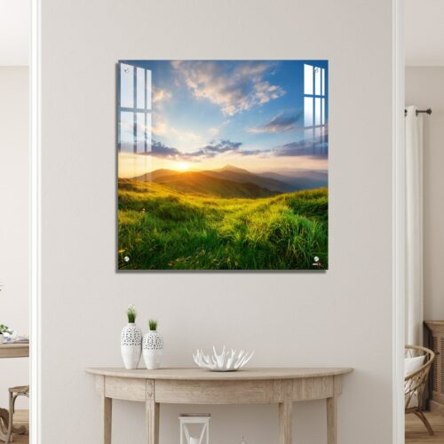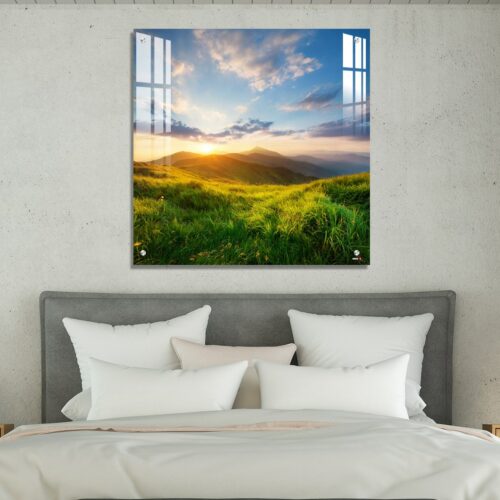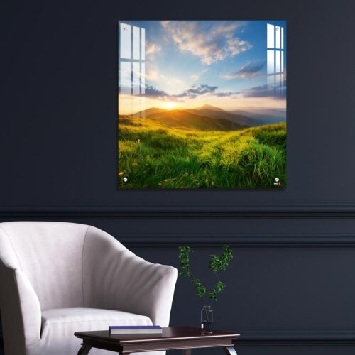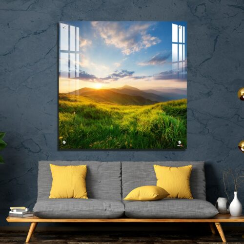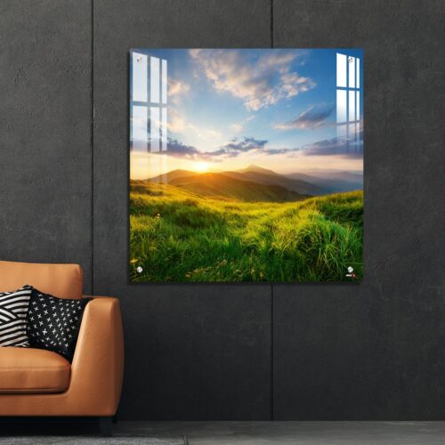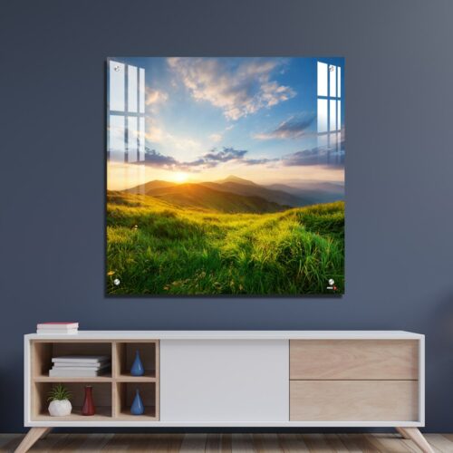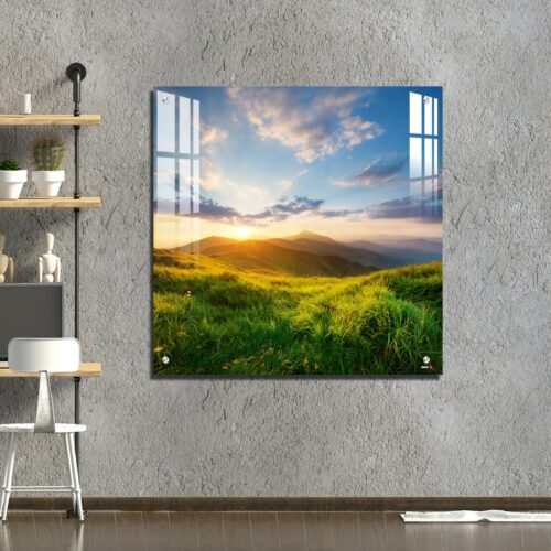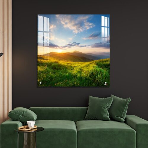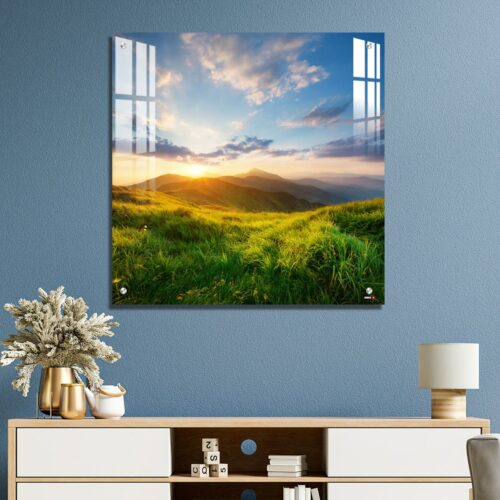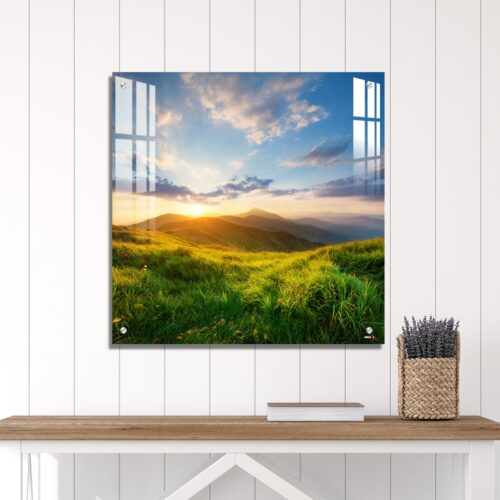 Acrylic Wall Decor – Field With Flower in The Mountain Valley. Beautiful Natural in The Summer Time