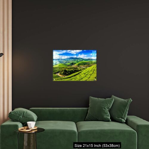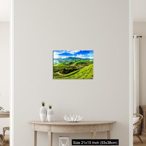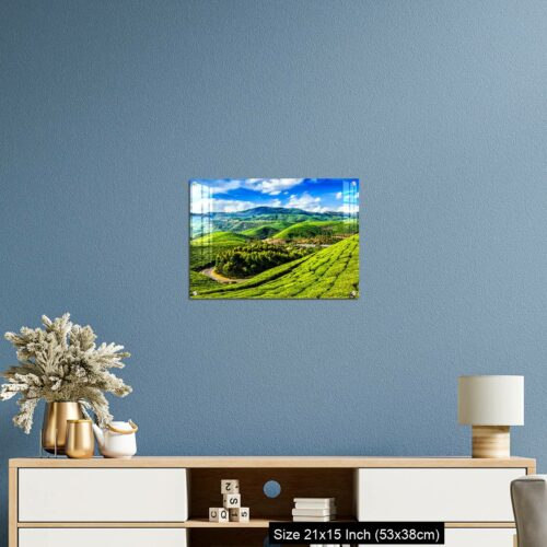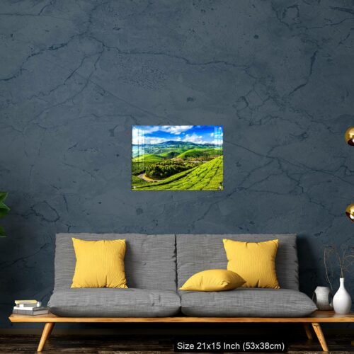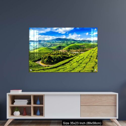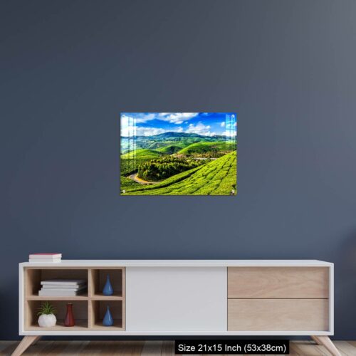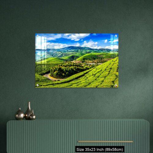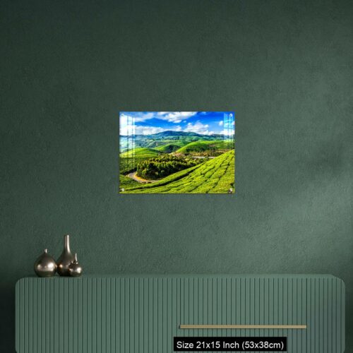Acrylic Wall Decor – Green tea plantations in Munnar, Kerala, India