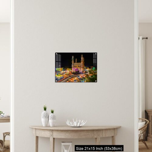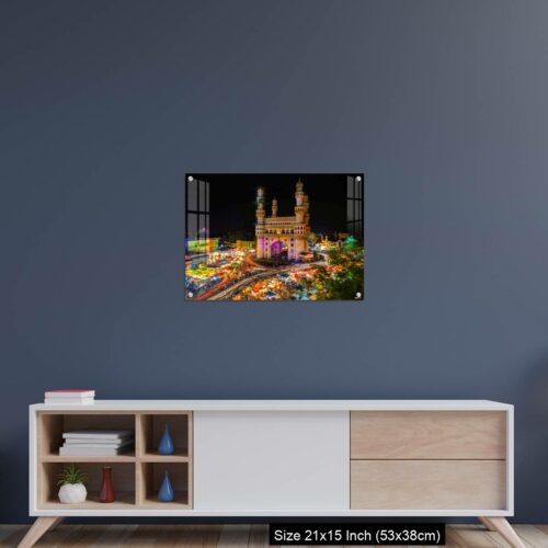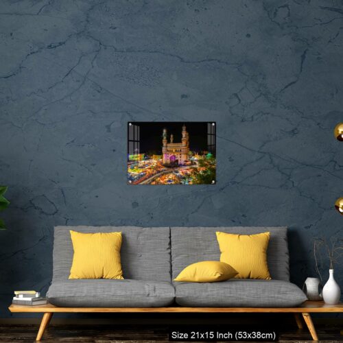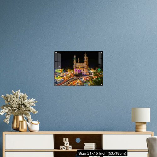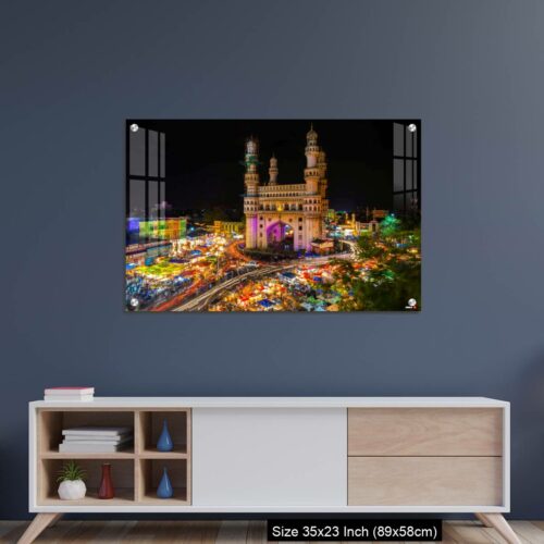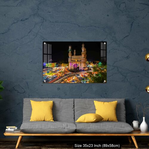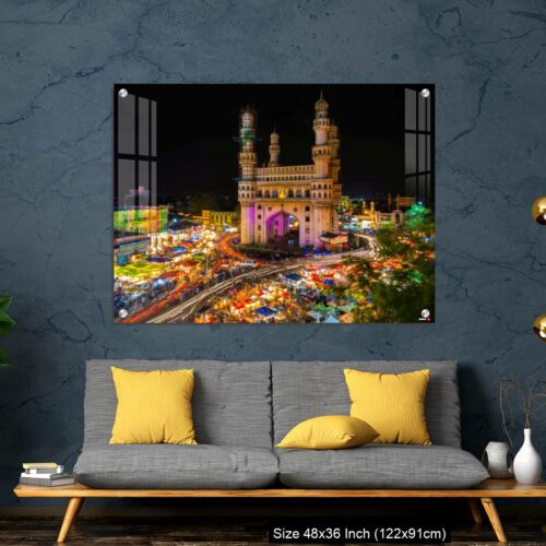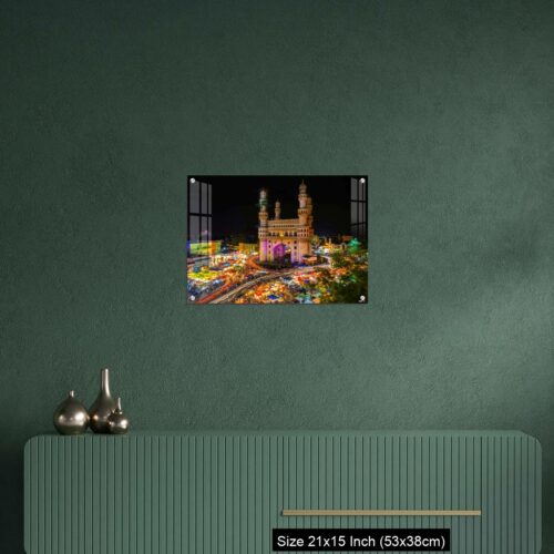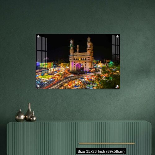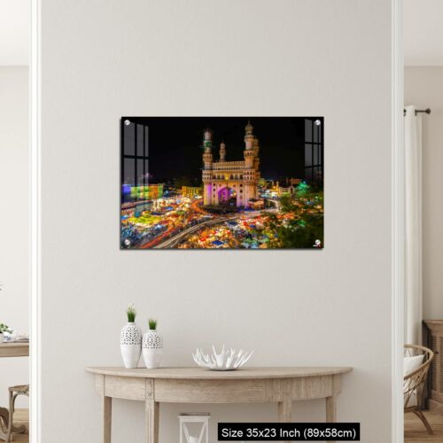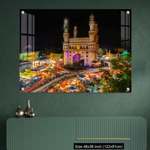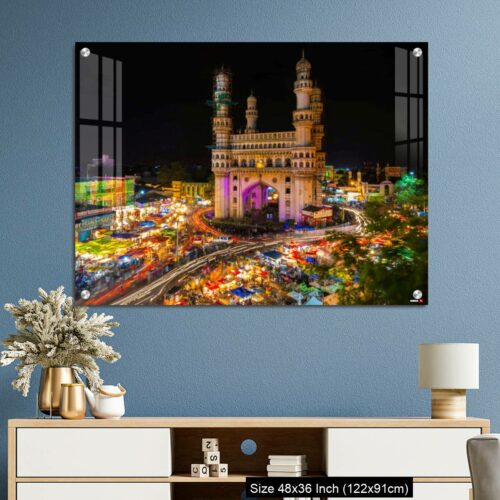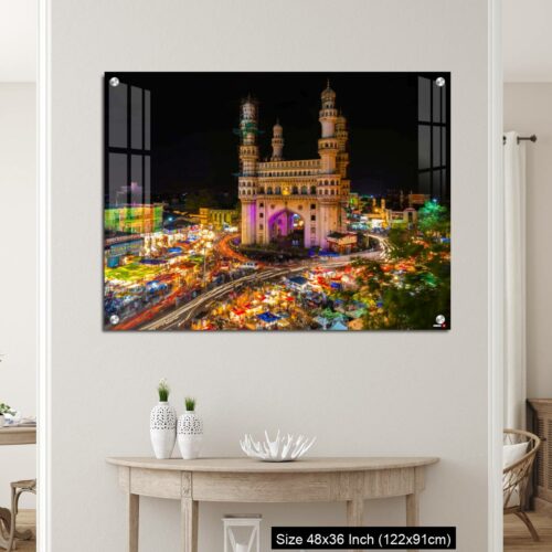 Acrylic Wall Decor – High Wide Angle View of Charminar in the Night