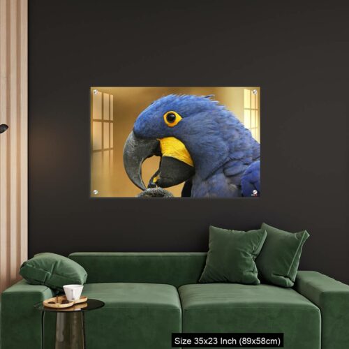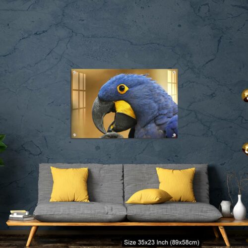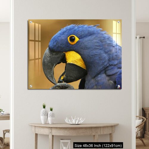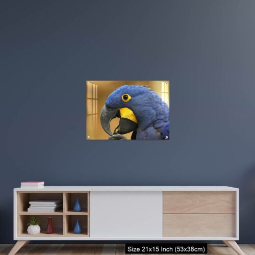 Acrylic Wall Decor – Hyacinth Macaw, anodorhynchus hyacinthinus, portrait of Adult with open Beak