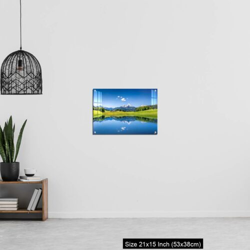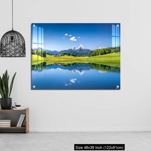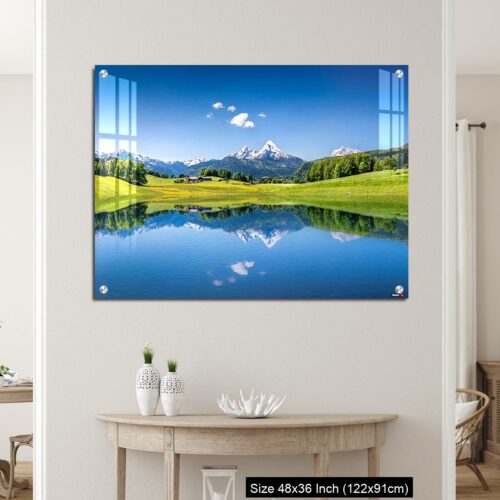 Acrylic Wall Decor – Idyllic summer landscape with mountain lake in the Alps