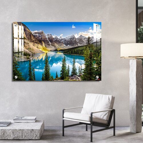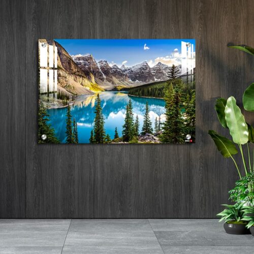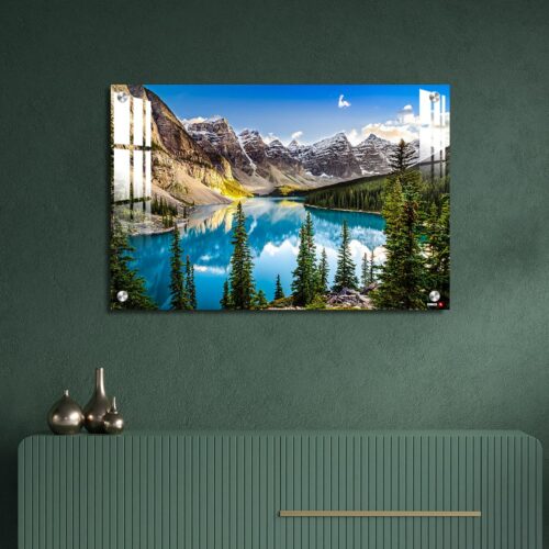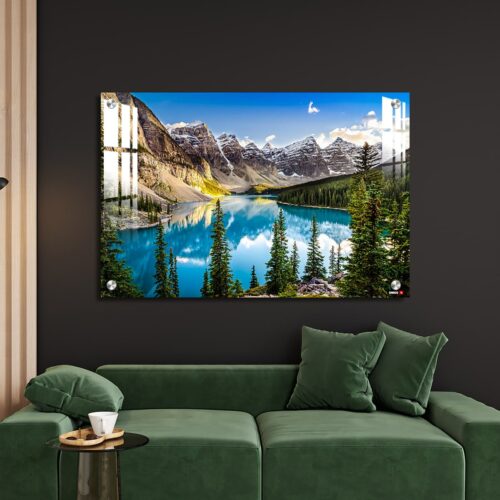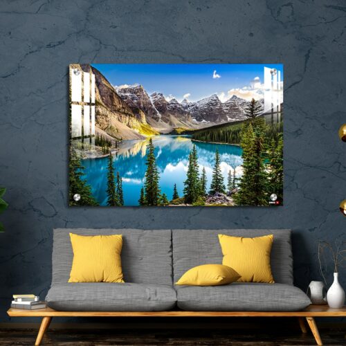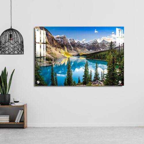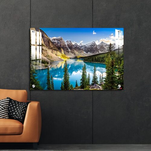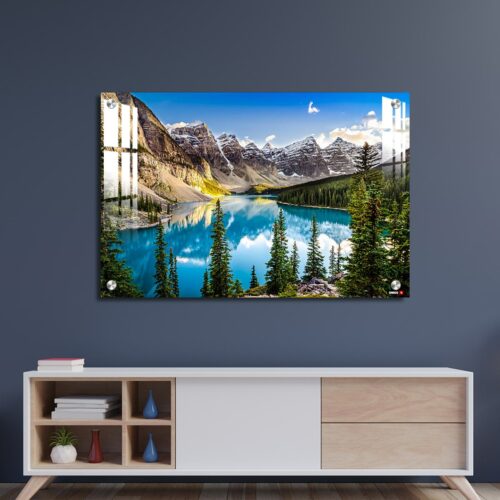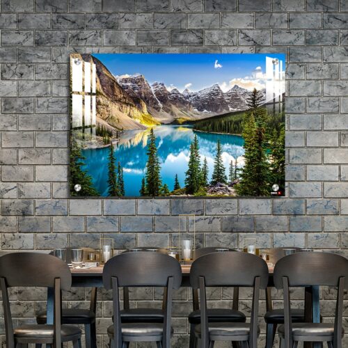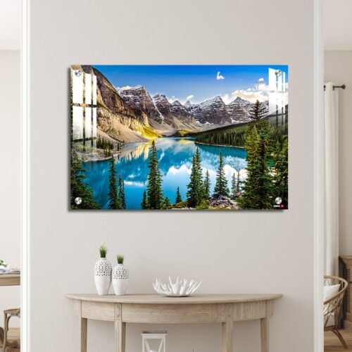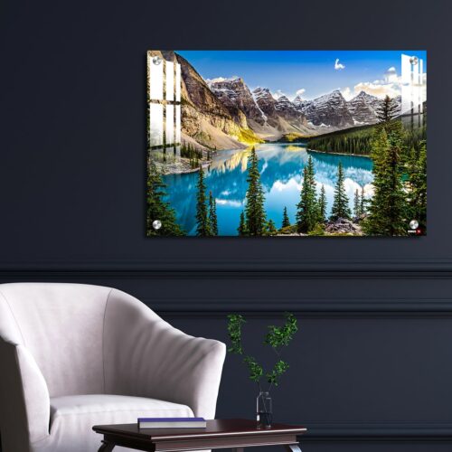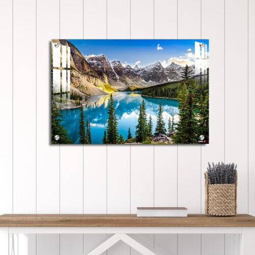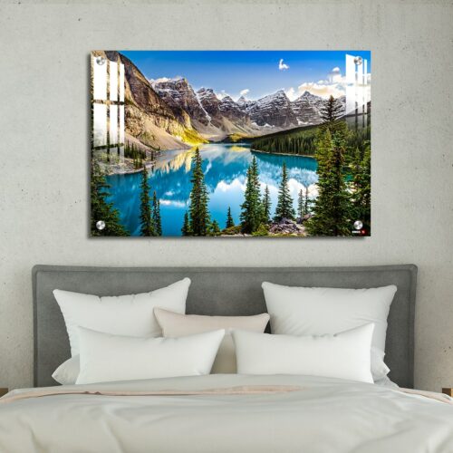 Acrylic Wall Decor – Landscape Sunset View of Morain Lake and Mountain Range