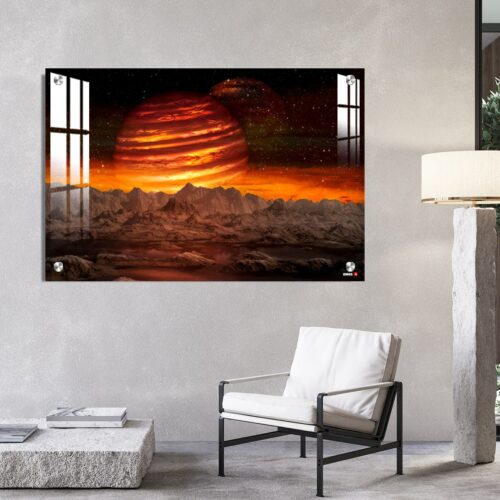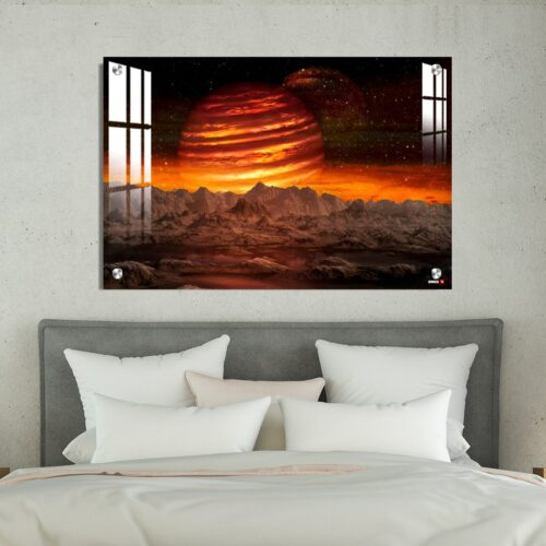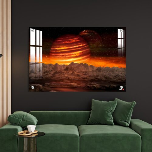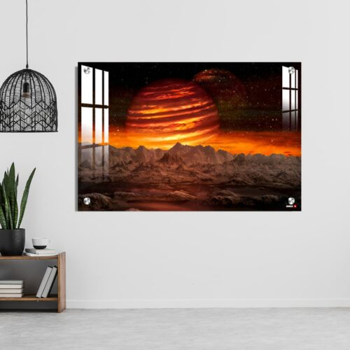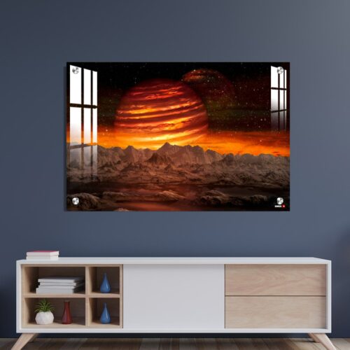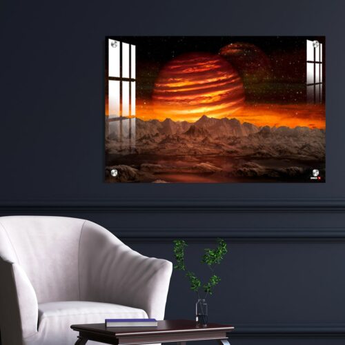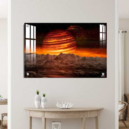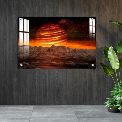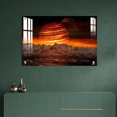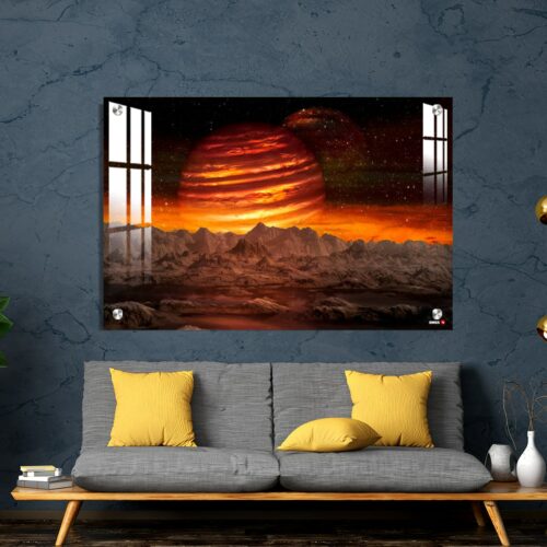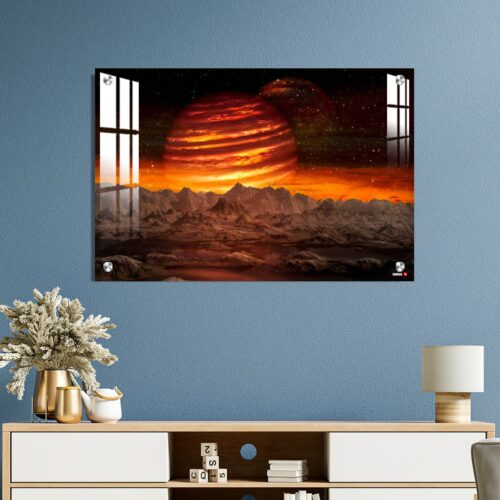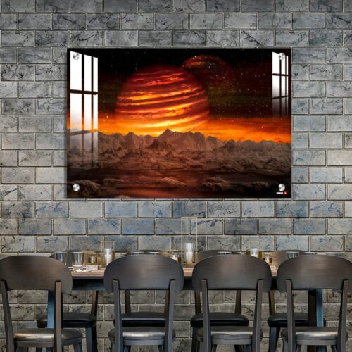 Acrylic Wall Decor – View of The Alien Planet From Space During its Two Moons Rise. Elements of This Image Furnished by NASA.