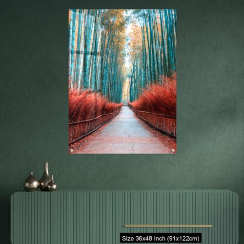 Acrylic Wall Decor – walkway bamboo tunnel named Arashiyama bamboo forest in Kyoto, Tourist landmark of Japan