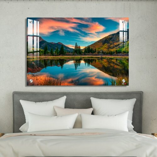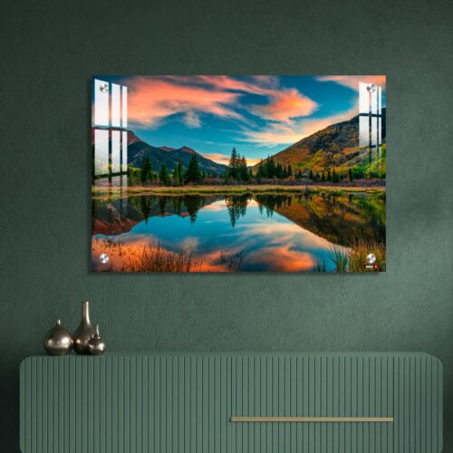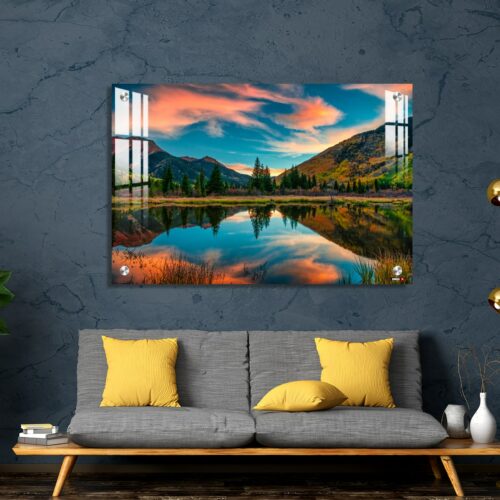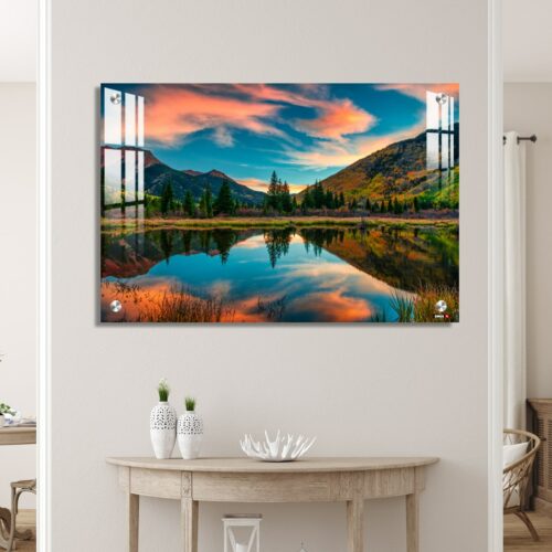 OMGs® Acrylic Wall Decor – Colorful Panoramic Mountain View At Sunrise